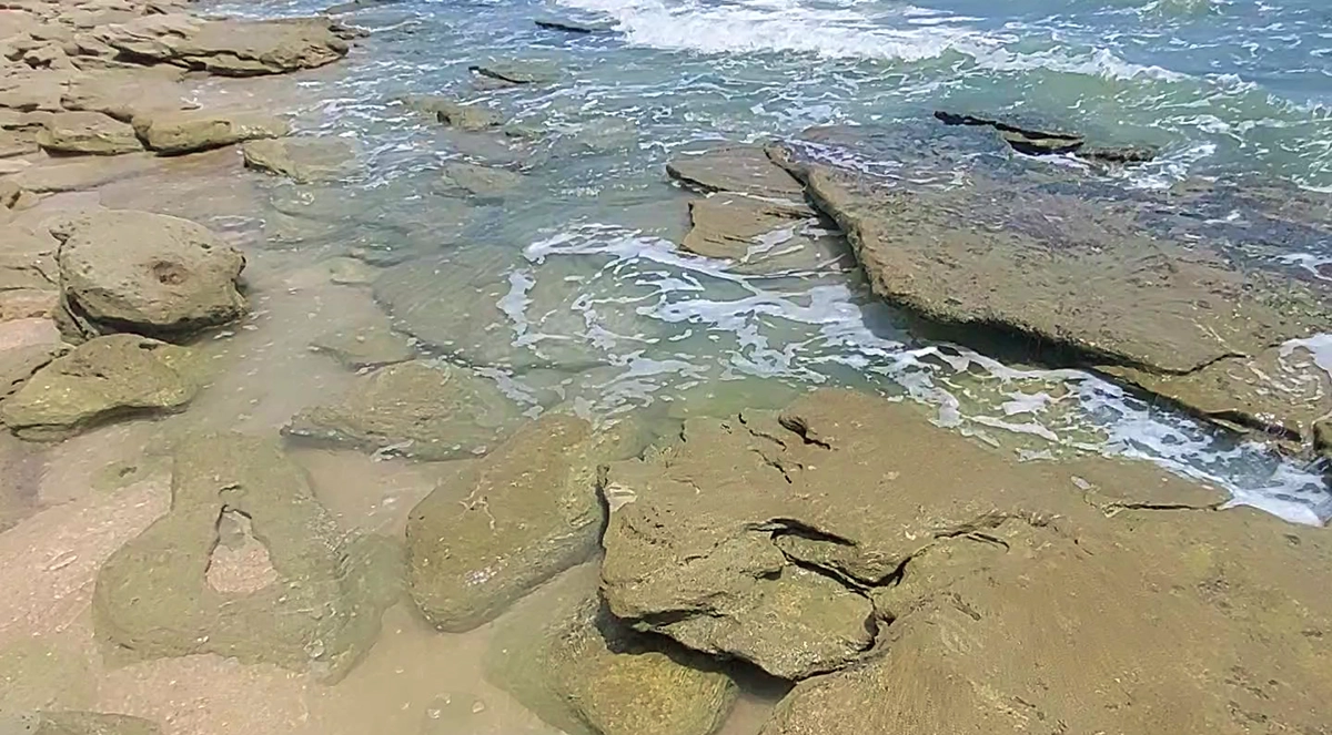 These are the classic tide pools formed when limestone, coquina rock, or fossilized shells create holes, pockets, and shallow basins along the coastline.