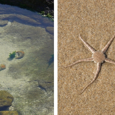 Sea stars (starfish) and brittle stars – slow-moving, often camouflaged with most commonly found species including the brown spiny sea star, and lighter-colored nine-arm sea star.